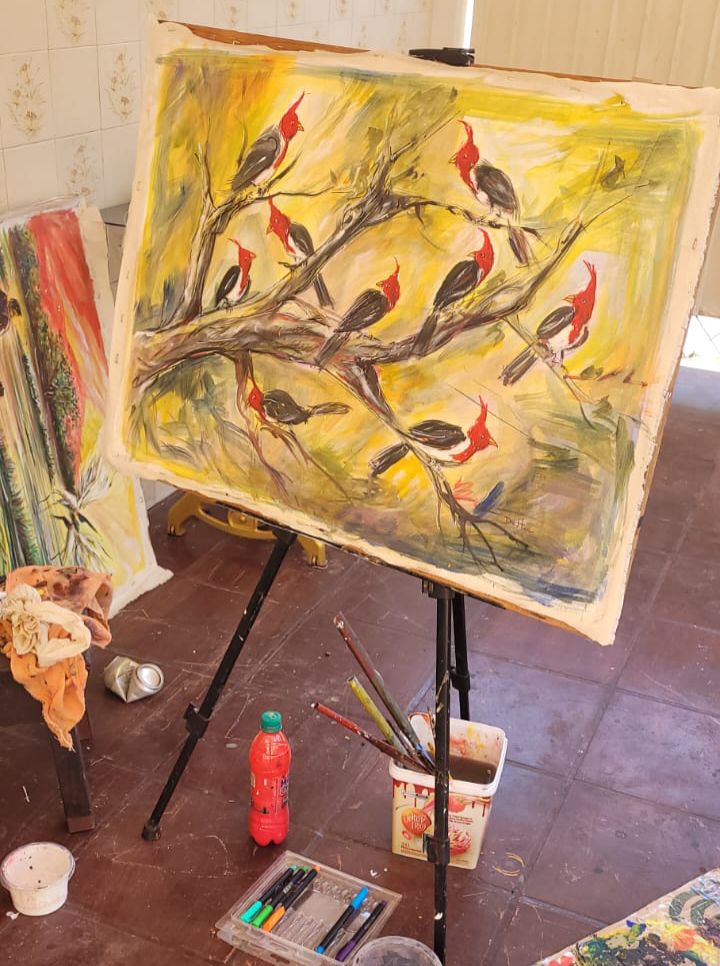 Ali, pincel e alma se encontram. Cada tela nasce do diálogo entre o real e o imaginado, entre o que os olhos veem e o que o coração sente.