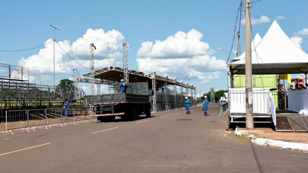 Carros alegóricos de algumas escolas já se concentravam ao redor do local no domingo, na Vila Sobrinho. Trabalhadores atuaram durante o dia na Praça do Papa para garantir a festa que começa hoje às 19h.