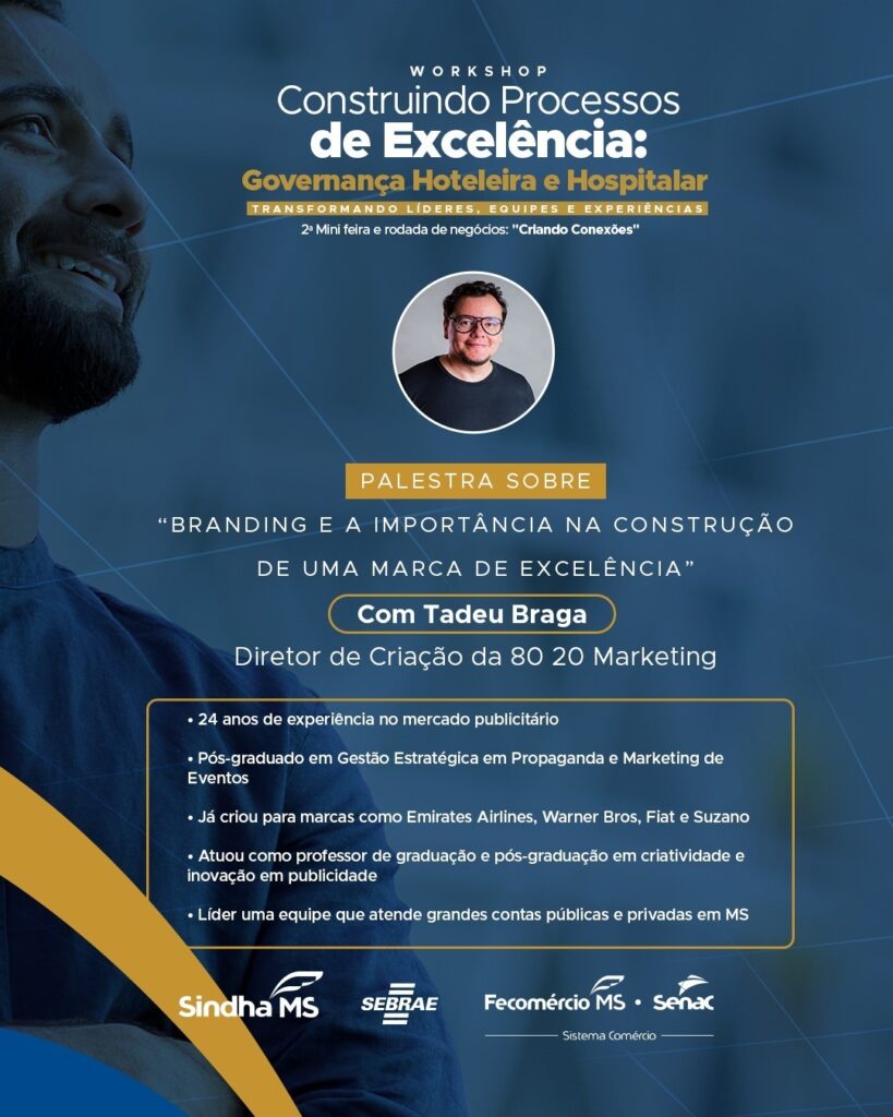 Outro momento será a palestra com o publicitário Tadeu Braga, diretor de Criação da 80 20 Marketing, que irá falar sobre “Branding e a importância na Construção de uma Marca de Excelência”.