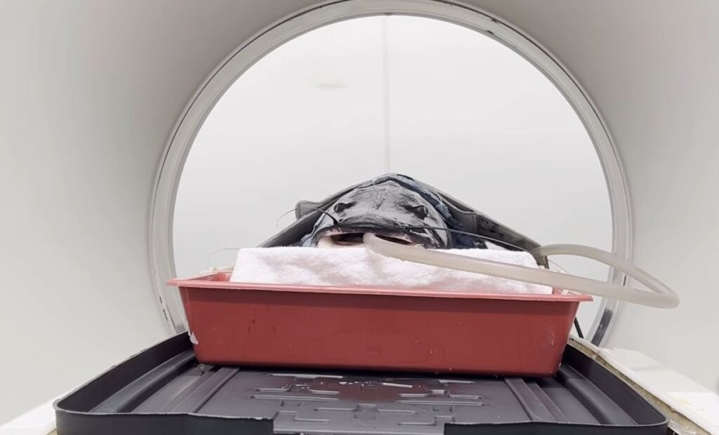 O animal foi submetido a uma bateria de exames, incluindo ultrassom e tomografia, para investigar possíveis obstruções em seu sistema digestivo. Durante todo o processo, veterinários e estudantes tiveram o cuidado de manter os parâmetros adequados de temperatura, oxigenação e bem-estar do peixe, que permaneceu fora da água apenas pelo tempo necessário, em uma estrutura especial que garantiu sua respiração.